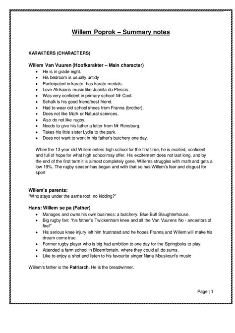 Free PDF willem poprok summarised in english Doc