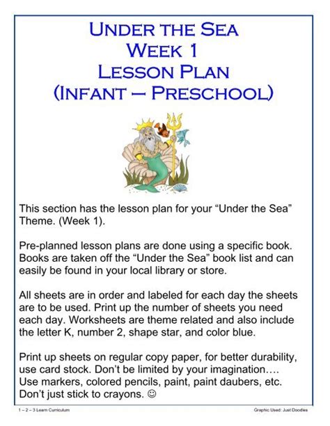 Download online Under The Sea Week 1 Lesson Plan Infant Preschool Library Binding Library Genesis